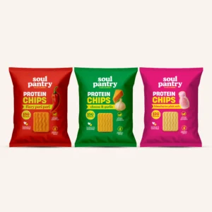 Soul Pantry Cheese & Garlic Protein Chips deliver a rich, savoury punch in every crunchy bite. Made with authentic cheddar-style cheese, warm garlic undertones, and a perfectly balanced seasoning blend, these baked, gluten-free chips hit that creamy–garlicky flavour craving instantly. With 15g natural protein and a bold, addictive taste, this is your guilt-free snack that’s big on crunch, big on flavour, and made to fuel your day.