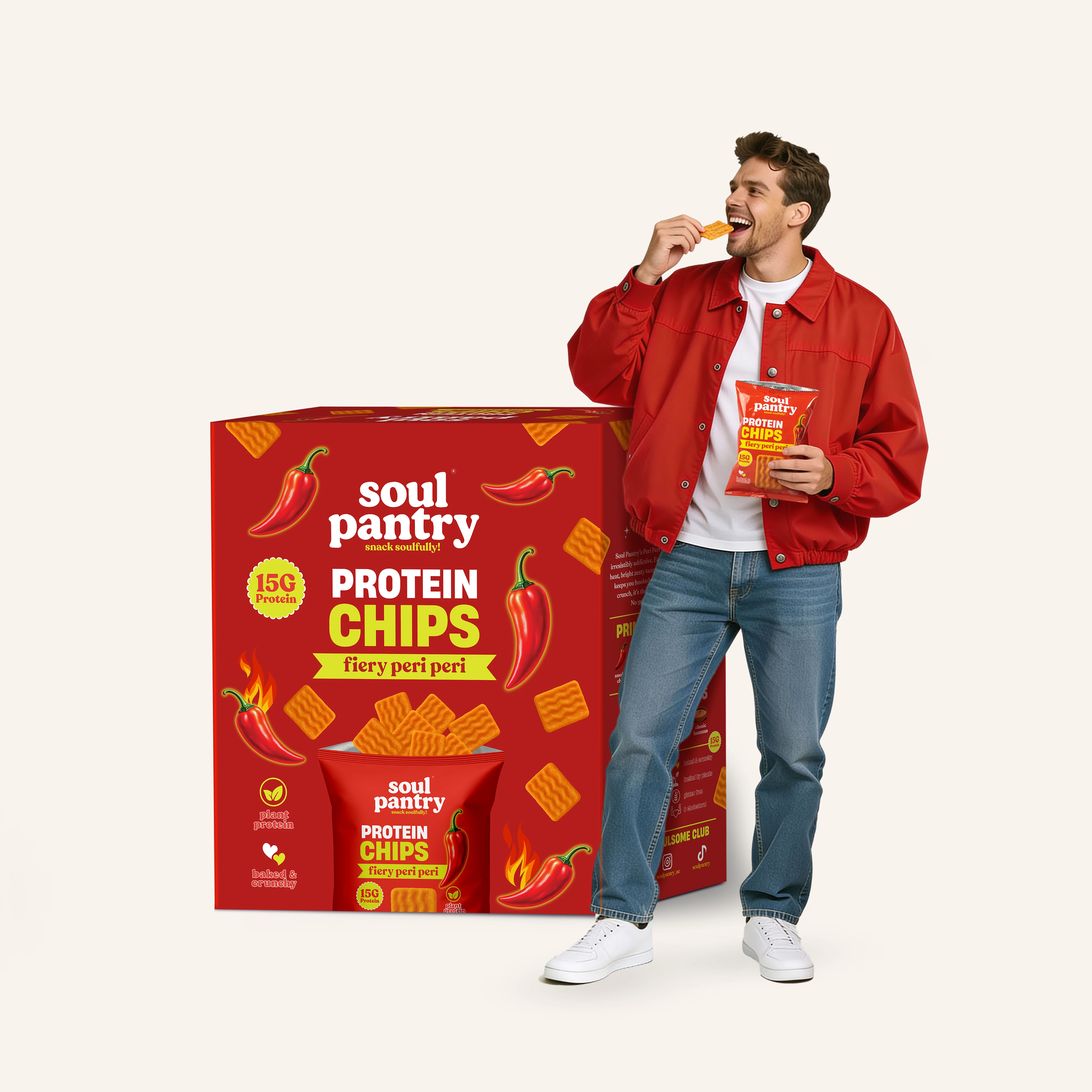 Soul Pantry Peri Peri Protein Chips bring the heat with a bold mix of smoky chilli, garlic, herbs, and a bright citrus kick in every crunchy bite. Baked, not fried, and completely gluten-free, these chips pack 15g natural protein for clean, fiery fuel. With a spicy-tangy peri peri seasoning that builds perfectly, this snack delivers a flavour hit that’s addictive, energizing, and made to keep up with your day.
